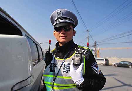 (交警佩戴警翼執(zhí)法記錄儀)