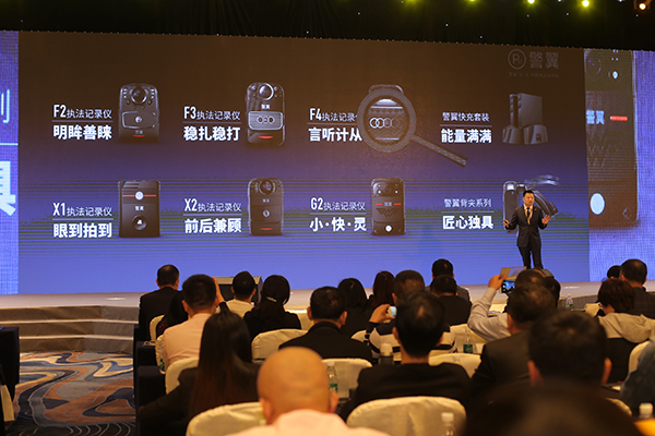 警翼常務(wù)副總經(jīng)理崔乘剛先生分享了產(chǎn)品正能量,并發(fā)布了一系列新品,產(chǎn)品陣容強(qiáng)大,分別有記錄儀F2、F3、F4、G2、X1、X2、W7工作站、快充底座,功能優(yōu)化了包括語音對(duì)講、HDR、視頻減震器、智能可穿戴,超高清攝錄,快速充電等方面。