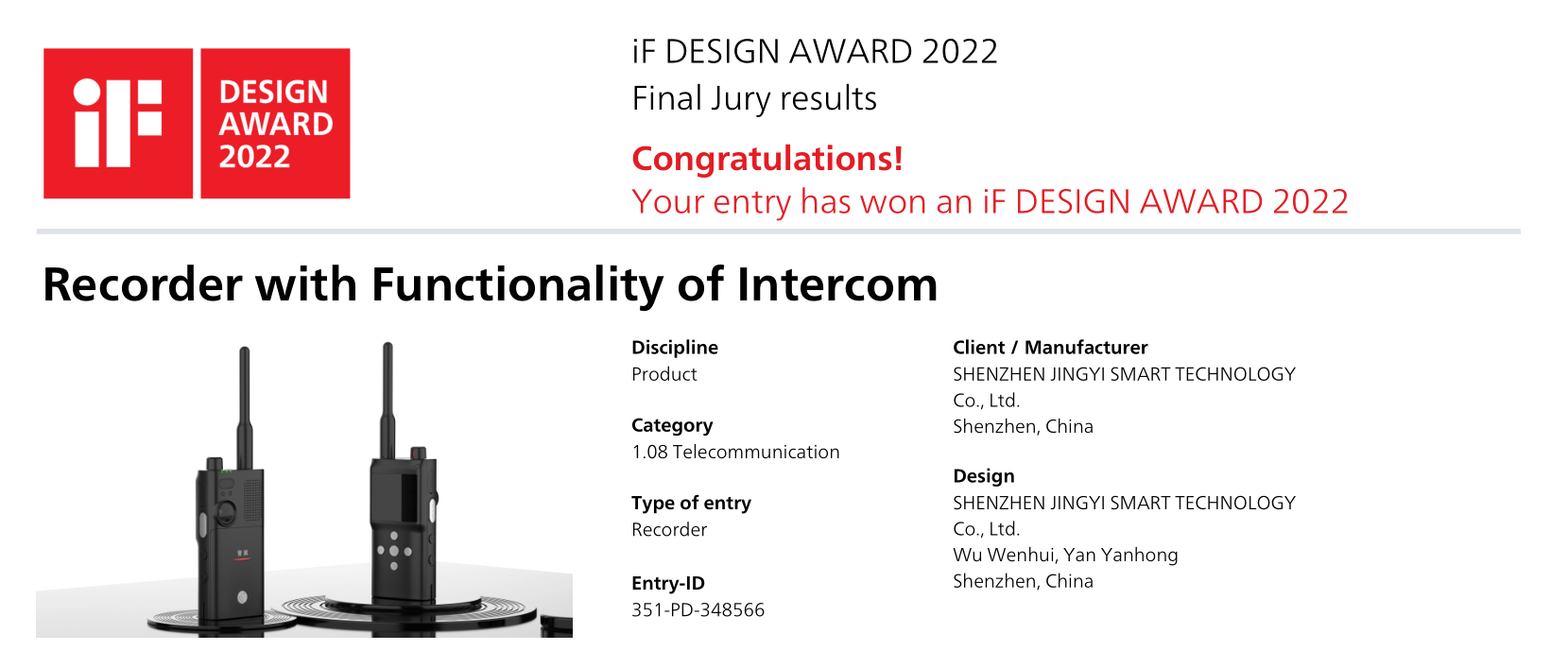 日前,2022年德國IF設(shè)計(jì)獎和紅點(diǎn)獎獲獎名單正式出爐。作為中國精良智能執(zhí)法裝備供應(yīng)商,警翼的戰(zhàn)略新品對講記錄儀X5,這款把記錄與對講二合一的創(chuàng)新產(chǎn)品,憑借其在創(chuàng)新力、產(chǎn)品力、品牌力等方面的突出表現(xiàn)斬獲這兩項(xiàng)著名國際工業(yè)設(shè)計(jì)獎。